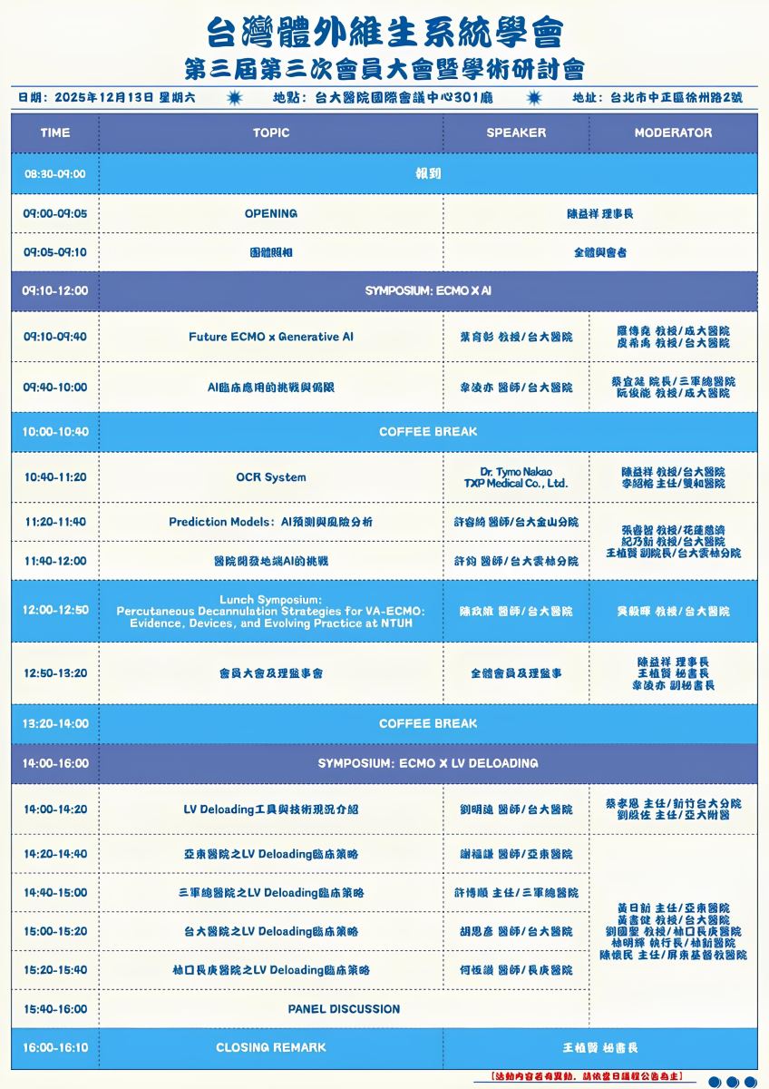 第三屆第三次會員大會暨學術研討會 2025 Annual Meeting of TwECMO2S